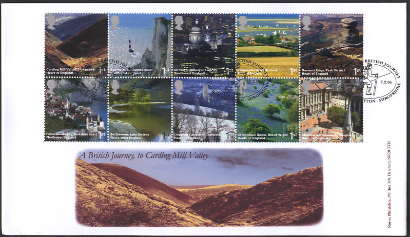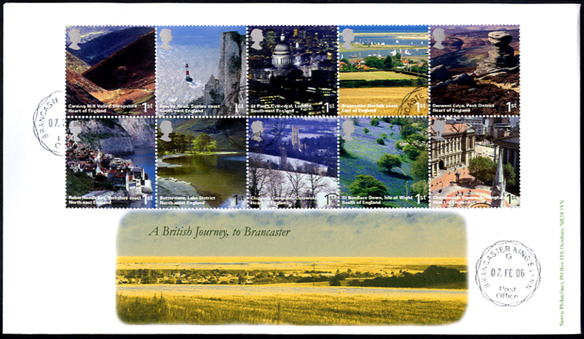 Norvic official first day cover for British Journey set of 10 stamps issued 7 Febrtuary 2006 and map postmark.