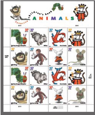 - Click on the stamps to see the whole sheet * Very Hungry Caterpillar * Wilbur (from Charlotte's Web) * Fox in Socks * Maisy * Wild Thing * Curious George * Olivia * Frederick |