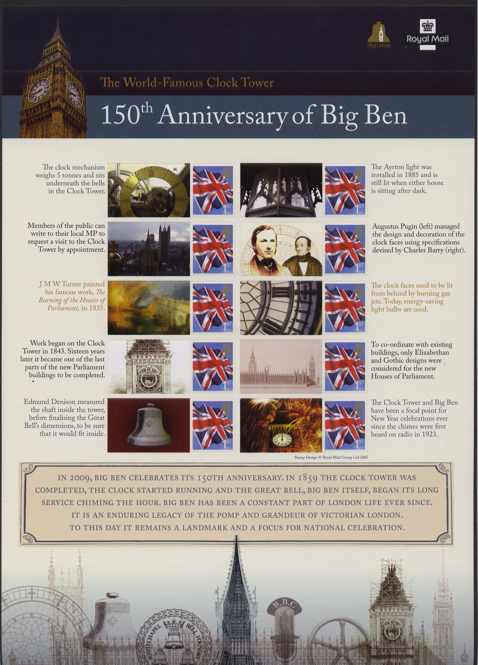 150th Anniversary of Big Ben Commemorative Sheet: 18 September 2009